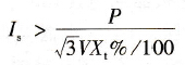 (5-5)式中P-变压器容量,kVA; Is-短路电流,kA; V-变压器副边额定电压,V; Xt%-以百分比表示的变压器阻抗。