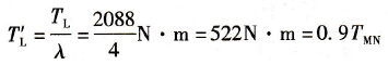 显然,电动机并未充分发挥作用,处于“大马拉小车”的状态。 (2)从转矩看,负载的折算转矩为