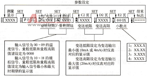 ②置出PP36进入A2页,确定输入信号对应的显示范围和变送输出范围。