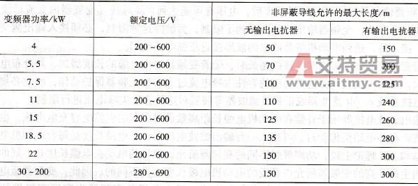 值得指出的是脉冲电压通过较长的输电线时,由于长线上波的反射叠加使得在长线(即变频器输出导线)超过临界长度后,电压有可能达到直流母线(变频器内直流母线)电压的2倍。因此,变频器输出线长度受到了限制,为解除这种限制,必须接入输出侧交流电抗器。接入后,送到电动机等负载上的波形接近正弦电压波形。