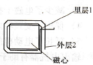 选择电感值在0. 041mH左右,工作电流为170A的电抗器即可。输出侧交流电抗器绕制在磁心上的导线头尾的位置,关系到电感向外发射干扰能量的程度,变频器输出侧交流电抗器断面结构如图2-13所示,绕组头1在里层,尾2在外层,因此1接变频器的输出,2接负载电动机较好,这样,变频器输出端的强干扰被外层屏蔽,减少了干扰向外发射。