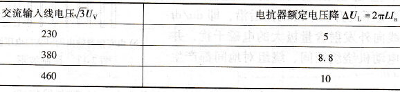 输入电抗器的容量可按预期在电抗器每相绕组上的压降来决定。一般选择压降为网侧相电压的2%~4%,也可按表2-3的数据选取。