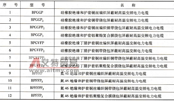 表2-14 耐高温变频器专用电缆基本型号及名称