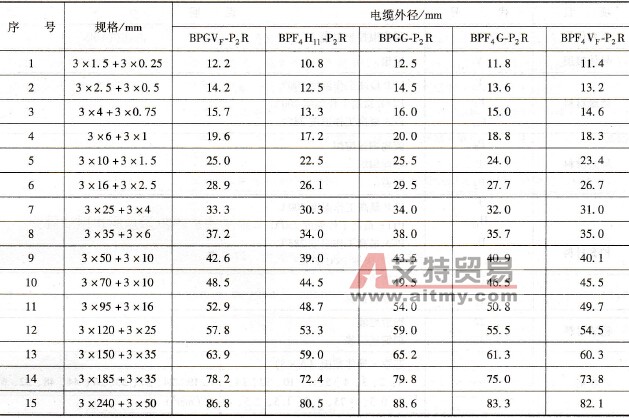 表2-15 耐高温变频器专用电缆电缆结构参数