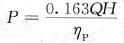 式中,P为轴上功率(kW);Q为流量(m³/min);H为全扬程(m);ηp为泵效率。