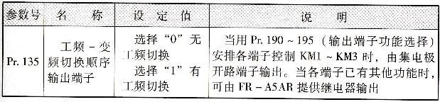 (1)异常情况下变频至工频自动切换。设置变频器功能参数Pr. 138 =1(变频器异常时自动切换成工频运行),配合外部电路来实现该切换功能。