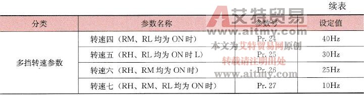 简介在用 PLC 对变频器进行多挡转速控制时,需要对变频器进行有关参数设置,参数可分为基本运行参数和多挡转速参数,具体见表 9-2 。 表 9-2 变频器的有关参数及设置值 PLC 与变频器连接
