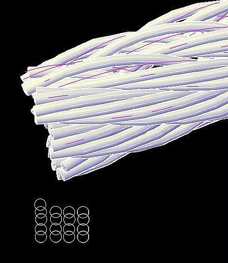 钢丝绳是由多层钢丝捻成股,再以绳芯为中心,由一定数量股捻绕成螺旋状的绳。在物料搬运机械中,供提升、牵引、拉紧和承载之用。钢丝绳的强度高、自重轻、工作平稳、不易骤然整根折断,工作可靠。在这个简单的CAD教程中,分享如何用CAD设计和制作在钢丝绳。