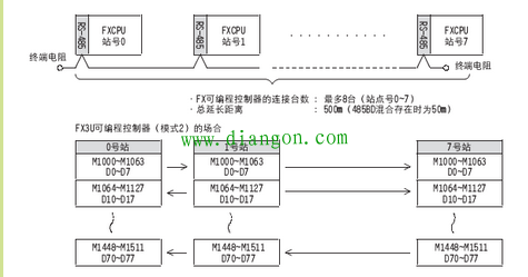 2)FX1N/FX2N/FX3U即可以作为主站,也可以作为远程设备站使用。