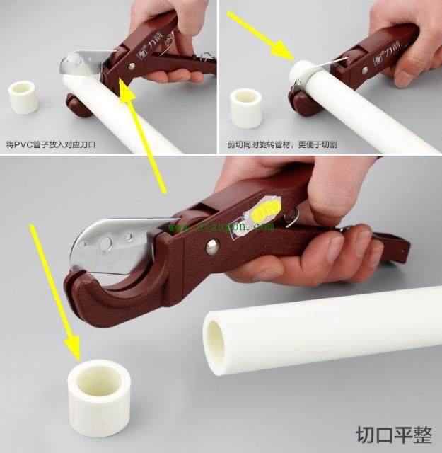 水电安装老师傅说首先用PPR管剪刀切管。切割时要把管子断面尽量剪平,没有毛边和毛刺,管材和管件连接端面必须清洁,干燥、无污染,否则会影响熔接效果。并在管材熔接口标上熔接深度线。