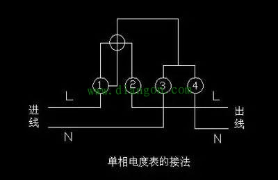 单相电度表共有四个接线端子,从左至右按1、2、3、4编号。