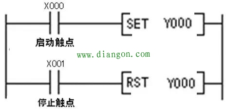 采用置位复位指令实现起动、自锁和停止控制PLC梯形图