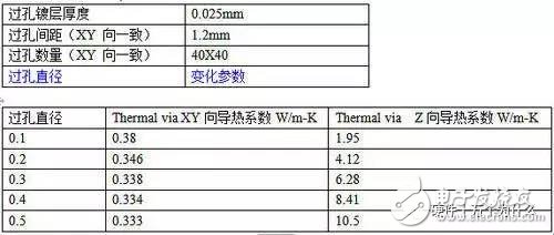 加热过孔的目的就是为了增强Z向导热的能力,让发热面的元件快速冷却,所以,结合以上的数据可以看出,增加孔径,增加镀层厚度,增加过孔数目都是能显著强化Z向的导热的。