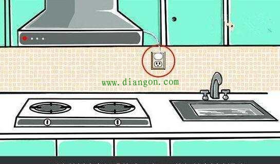 6、油烟机插座当根据厨柜设计,安装在距地1.8米至2米高度,最好能为脱排管道所遮;