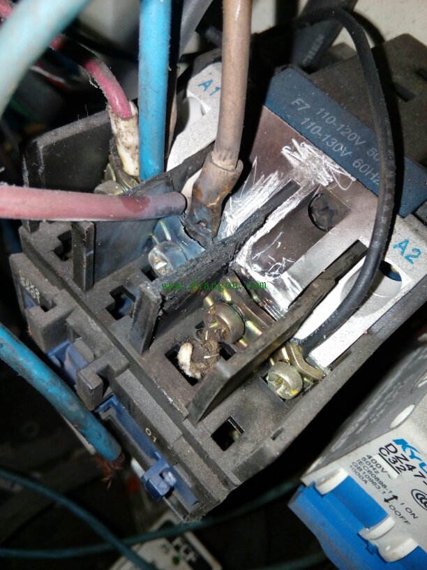 发生这种情况后,除去遮弧珊板上金属物这个步骤一定不能省,用砂纸或刮刀把珊板上的金属熔融物一定清楚干净,如果不方便清除,建议更换新的接触器,否则,难逃二次电弧爆炸!