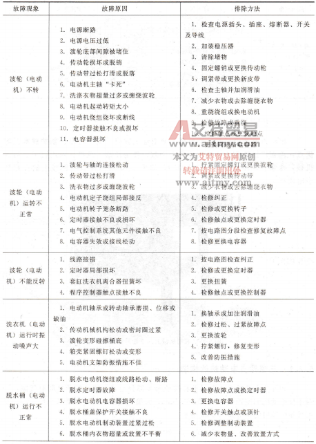 表5-6家用洗衣机用电动机和电气、机械控制系统的常见故障及排除方法