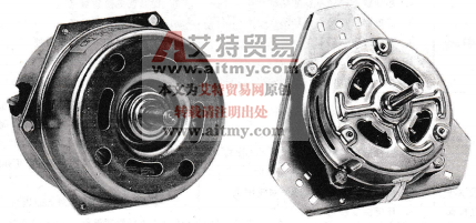 家用洗衣机按功能分为波轮式、滚筒式以及搅拌式三类。家用洗衣机用电动机为驱动洗衣机的波轮、滚筒、脱水筒以及排水泵的动力机械,大多使用单相电容器运转异步电动机。其结构一般为开启式、自冷式或自扇冷式。如图5 18所示是家用洗衣机用电动机外形。