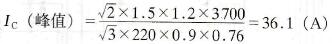 例如,电源为220 V交流,电动机功率为3.7kW,K1=150%,K2=120%,η=0.9,cosΦ=0.76,则