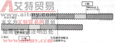 用砂布或溶剂均匀地清除两侧电缆上石墨层500mm以上,如图4- 18所示。