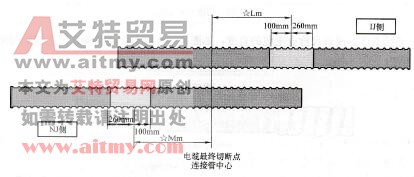 简介在“ (IJ 侧 ) ”和“ (NJ 侧 ) ”处去除外护套 360mm ,如图 4 -17 所示。 图 4 16 带支撑管的橡胶套 图 4 - 17 外护套的剥切尺寸 用砂布或溶剂均匀地清除两侧电缆上石墨层 500mm 以上,如图