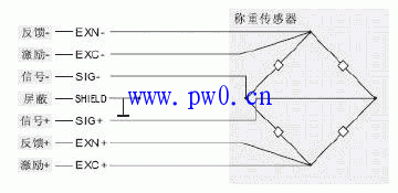 一般的称重传感器都是六线制的,当接成四线制时,电源接线(EXC-,EXC+)与传感器线(SENSE-,SENSE+)就分别短接了。