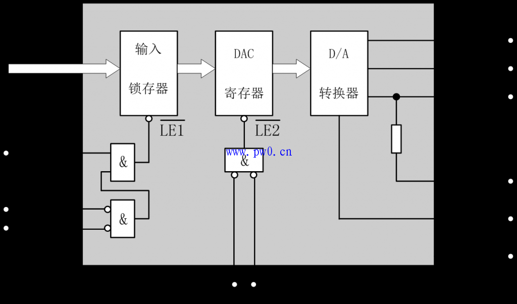 应当注意,精度和分辨率具有一定的联系,但概念不同。DAC的位数多时,分辨率会提高,对应于影响精度的量化误差会减小。但其它误差(如温度漂移、线性不良等)的影响仍会使DAC的精度变差。