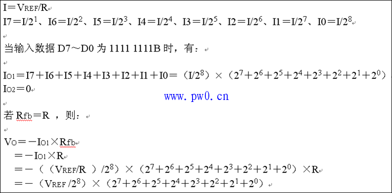 双极性输出时的分辨率比单极性输出时降低1/2,这是由于对双极性输出而言,最高位作为符号位,只有7位数值位