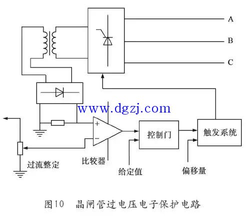 ②过电压保护的第二种方法是采用电子电路进行保护。常见的电子保护原理如图10所示。