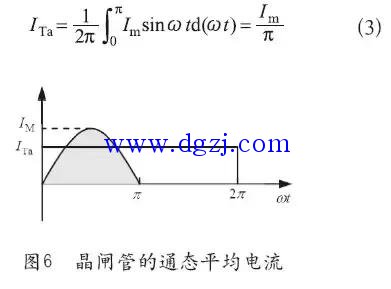 设单相工频半波电流峰值为IM时波形,如图6所示。通态平均电流为: