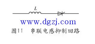 ①电流上升率di/dt的抑制。晶闸管初开通时电流集中在靠近门极的阴极表面较小的区域,局部电流密度很大,然后以0.1mm/μs的扩展速度将电流扩展到整个阴极面,若晶闸管开通时电流上升率 di/dt过大,会导致PN结击穿,必须限制晶闸管的电流上升率使其在合适的范围内,其有效办法是在晶闸管的阳极回路串入电感,如图11所示。
