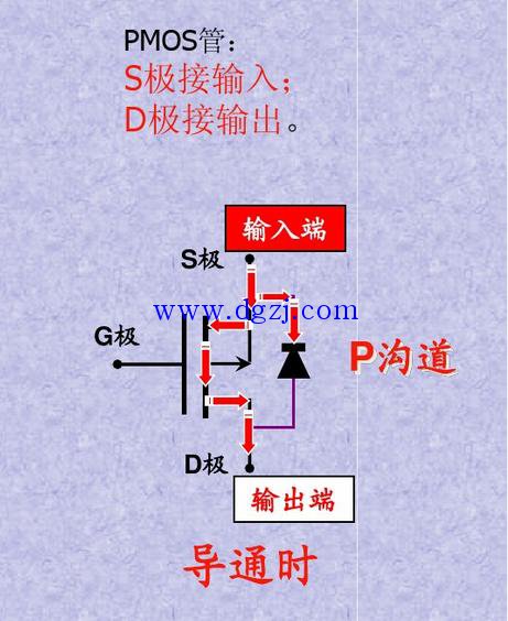 类似,如PMOS管的输入输出方向同样是与寄生二极管的方向相反。如下图。