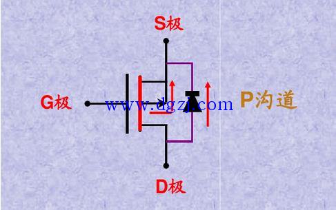 箭头与栅极G相背即为P沟道MOSFET。如下图。