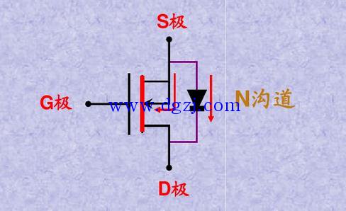 箭头指向栅极G即为N沟道MOSFET。如下图。