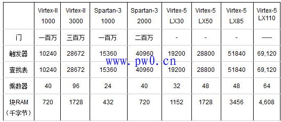 表1.不同系列FPGA源规格