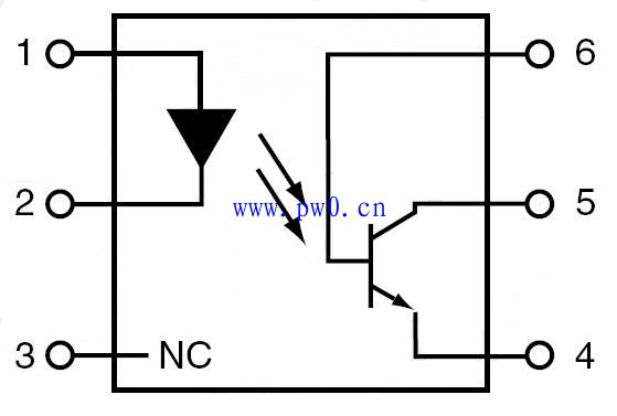 图二 光电耦合器之内部结构图 三极管接收型 6脚封装