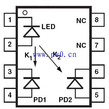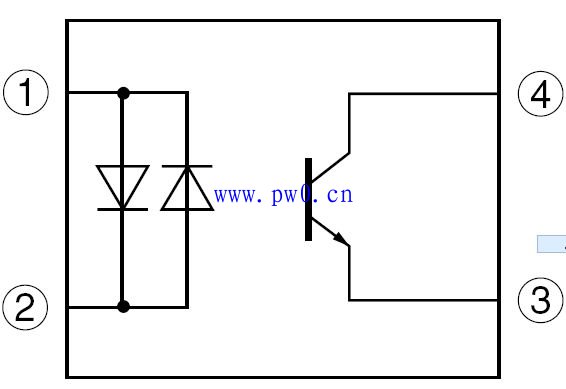 图三 光电耦合器之内部结构图 双发光二极管输入 三极管接收型 4脚封装