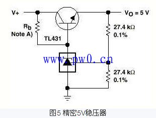 当然,这个电路并不太实用,但它很清晰地展示了该器件的工作原理在应用中的方法。将这个电路稍加改动,就可以得到在很多实用的电源电路,如图4,5。