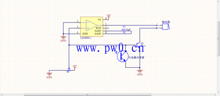 报警电路:参考上图,主要不同是去掉LM386的输出电容,让LM386的直流电压使5V有源蜂鸣器发声。