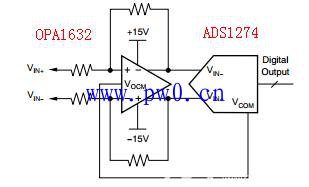 电路中需要将15V+的待测电压,输入到+5V的差分运放ADS1274中。ADC的参考电压是+2.5V,测量范围是-2.5V~+2.5V。