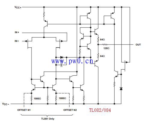 这时就需要在前级加一个更高输入阻抗的运放来buffer一下。FET型的一般输入阻抗都非常大,这里选择常用的TL082,J-FET输入管,阻抗是10的12次方欧姆。偏置电流都是pA或nA级别的,弱电流也能轻松驱动。