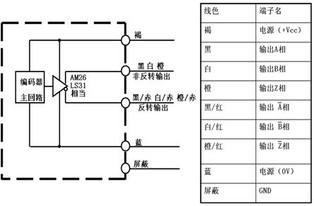 线性驱动输出是采用RS-422标准,用AM26LS31芯片应用于高速、长距离数据传输的输出模式。信号以差分形式输出,因此抗干扰能力更强。输出信号需专门能接收线性驱动输出的设备才能接收。输出电路见图5。
