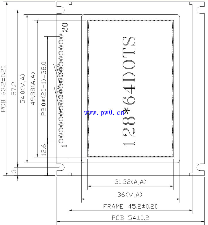 外形尺寸:63.2(L)*54.0(W)*9.5(H)