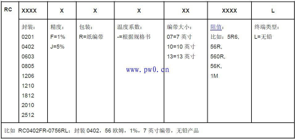 0603,0805,1206,1210,1812,2010,2512 上面印有3 位数或者4 位数。