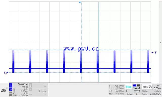 如图所示,是采用了恒流电路,测试的短路波形图,用恒流电路替代电阻启动解决了启动和短路的矛盾。