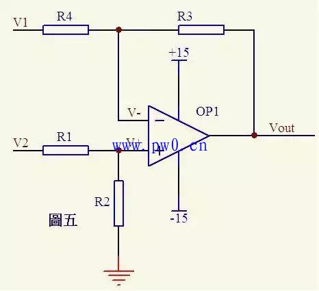 图五由虚断知,通过R1的电流等于通过R2的电流,同理通过R4的电流等于R3的电流,故有