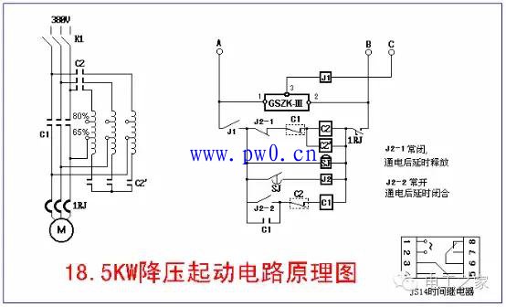 控制器上,自耦变压器的抽头有两种电压可供选择,分别是电源电压的65%和80%(出厂时接在65%抽头上),可根据电动机的负载大小适当选择。