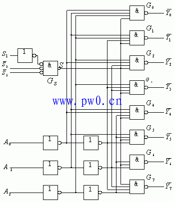 当一个选通端(G1)为高电平,另两个选通端(/(G2A)和/(G2B))为