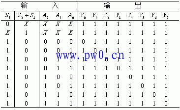 3线-8线译码器74LS138的功能表