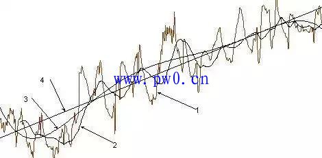 曲线1是用0.1秒测量一次的情况,表现了晶振的短稳;曲线3是用100秒测量一次的情况,表现了晶振的漂移;曲线4 是用1天一次测量的情况。表现了晶振的老化。