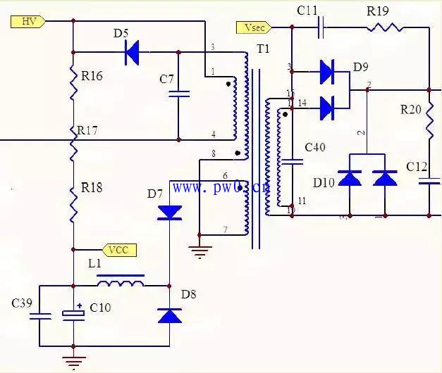 RC自举启动+反激式绕组自供电